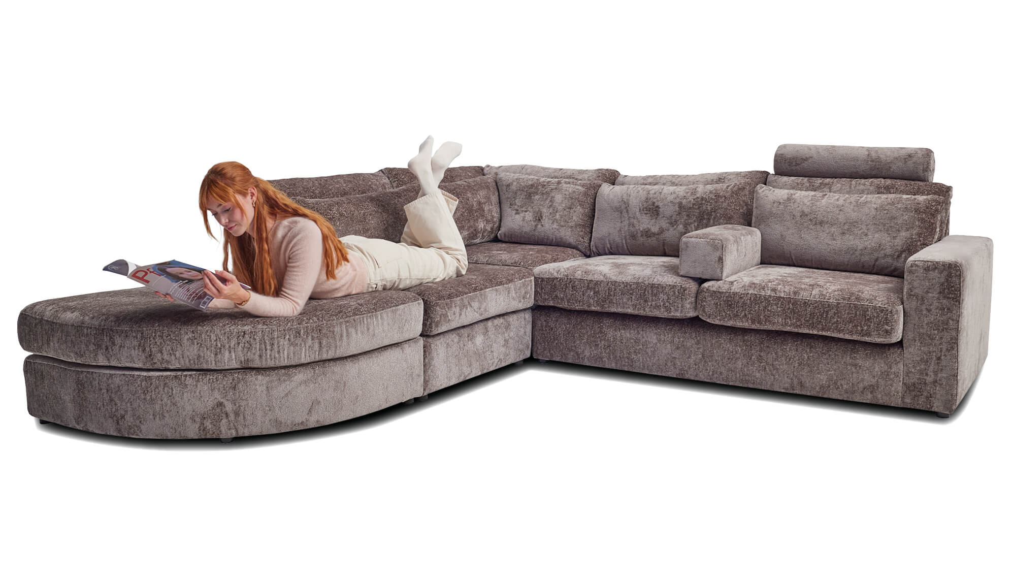 Das neue Grazia Ecksofa wurde für maximalen Komfort und Flexibilität entworfen. Die zweilagigen Rückenkissen sorgen für einen weichen, stützenden Sitz, in dem man stundenlang verweilen möchte. Verstellbare Armlehnen und Kopfstützen bieten Ihnen volle Freiheit: Platzieren Sie sie einfach so, wie es für Sie am bequemsten ist. Die mondförmige, runde Insel macht dieses Sofa nicht nur praktisch, sondern auch zu einem auffälligen und stilvollen Highlight in Ihrem Wohnzimmer.